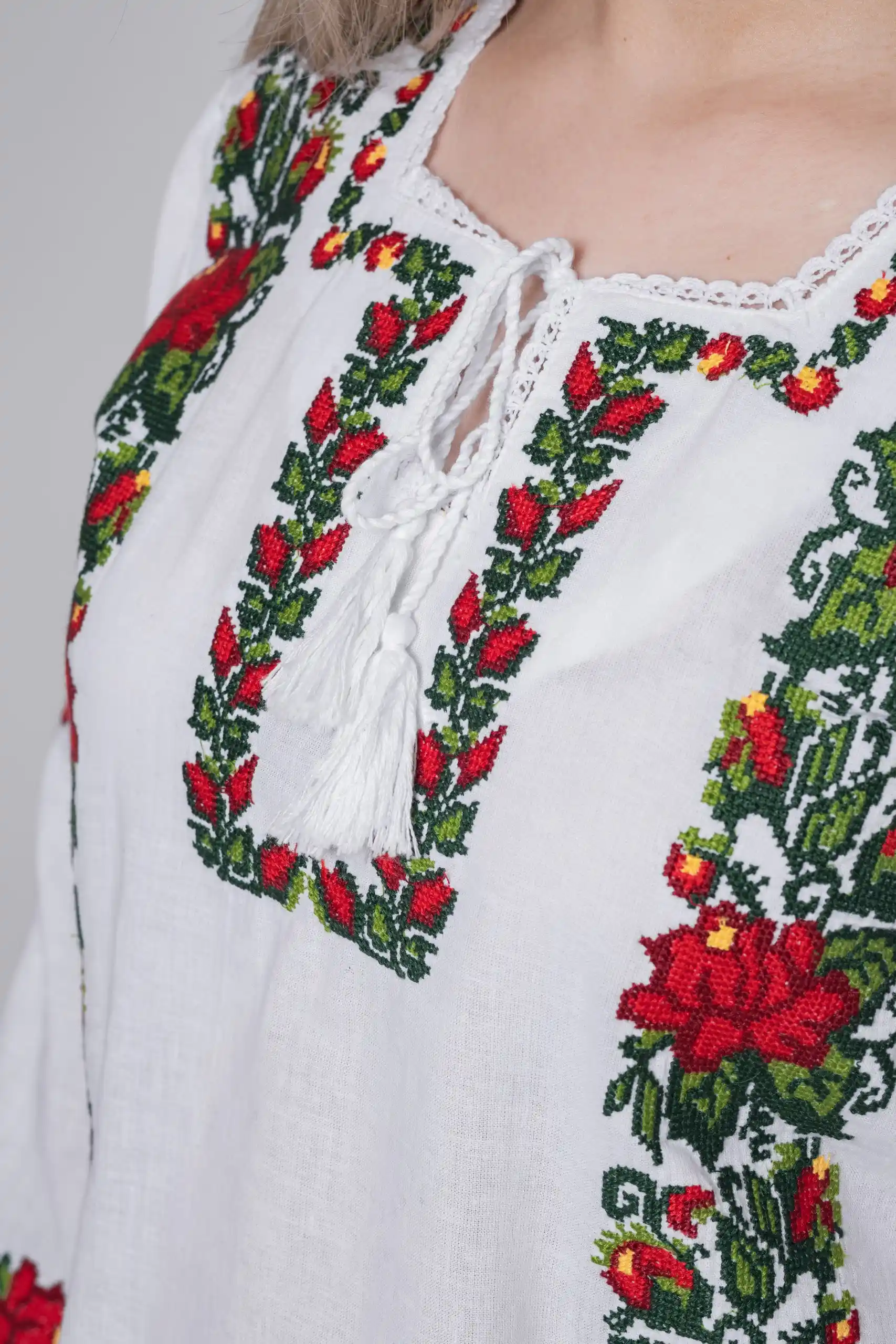Redescoperă frumusețea portului tradițional cu această ie de damă. Confecționată din bumbac 100% de calitate superioară, această ie oferă confort, respirabilitate și un aspect elegant, potrivit atât pentru evenimente speciale, cât și pentru ținute casual.