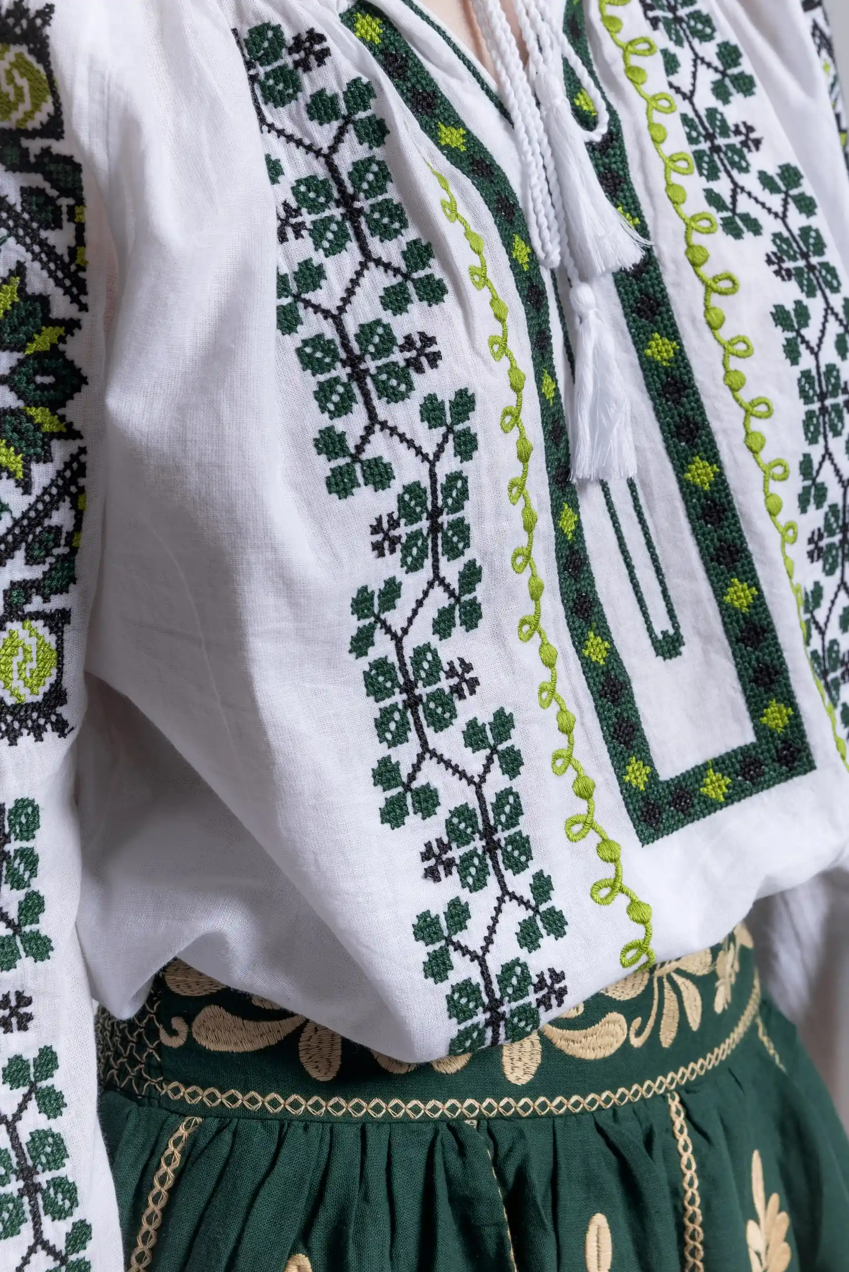 Redescoperă frumusețea portului tradițional cu această ie de damă. Confecționată din bumbac 100% de calitate superioară, această ie oferă confort, respirabilitate și un aspect elegant, potrivit atât pentru evenimente speciale, cât și pentru ținute casual.