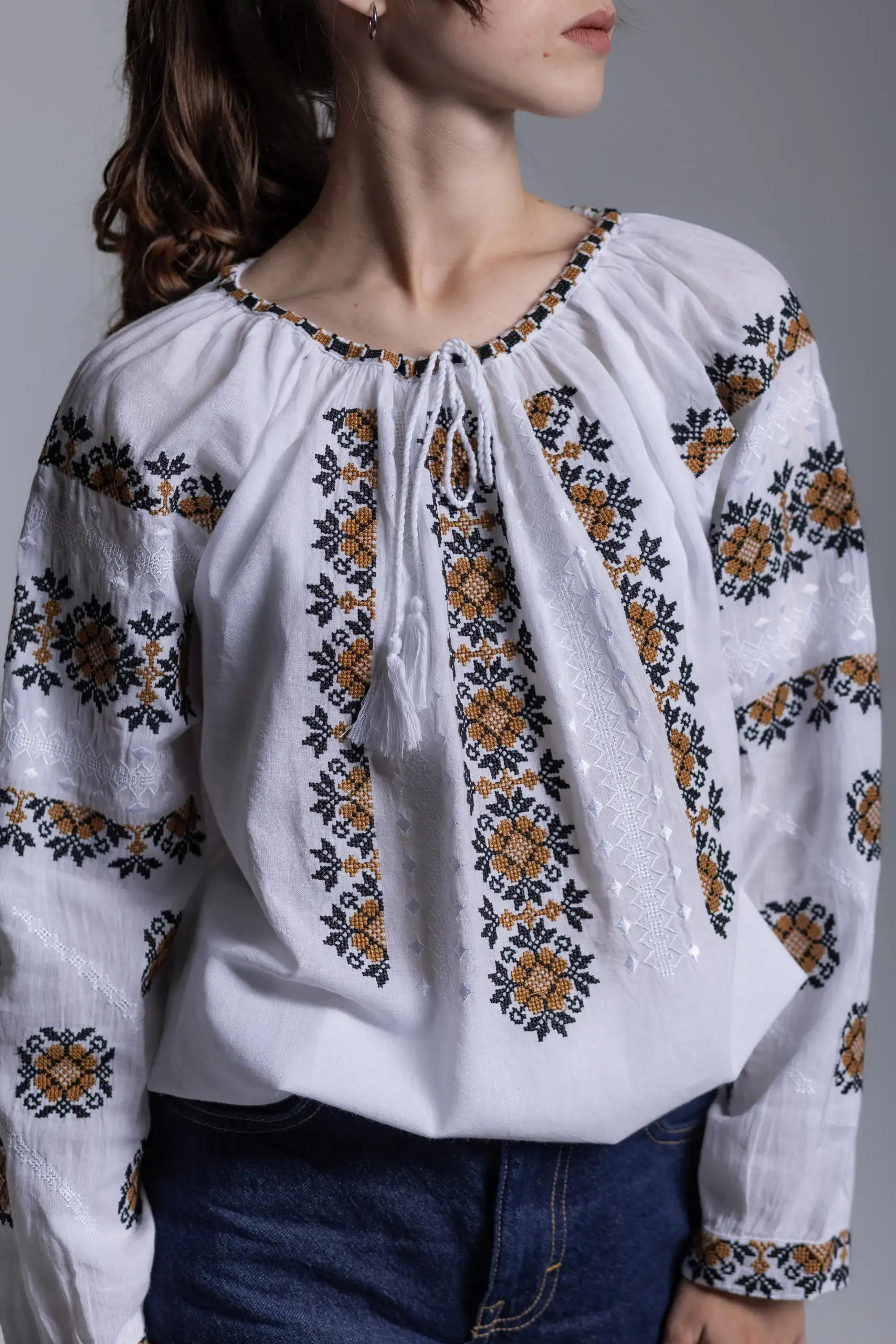 Redescoperă frumusețea portului tradițional cu această ie de damă. Confecționată din bumbac 100% de calitate superioară, această ie oferă confort, respirabilitate și un aspect elegant, potrivit atât pentru evenimente speciale, cât și pentru ținute casual.