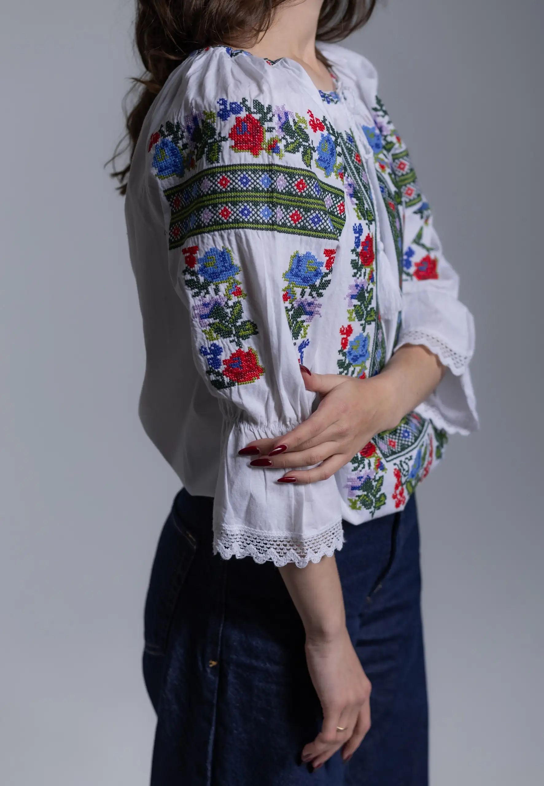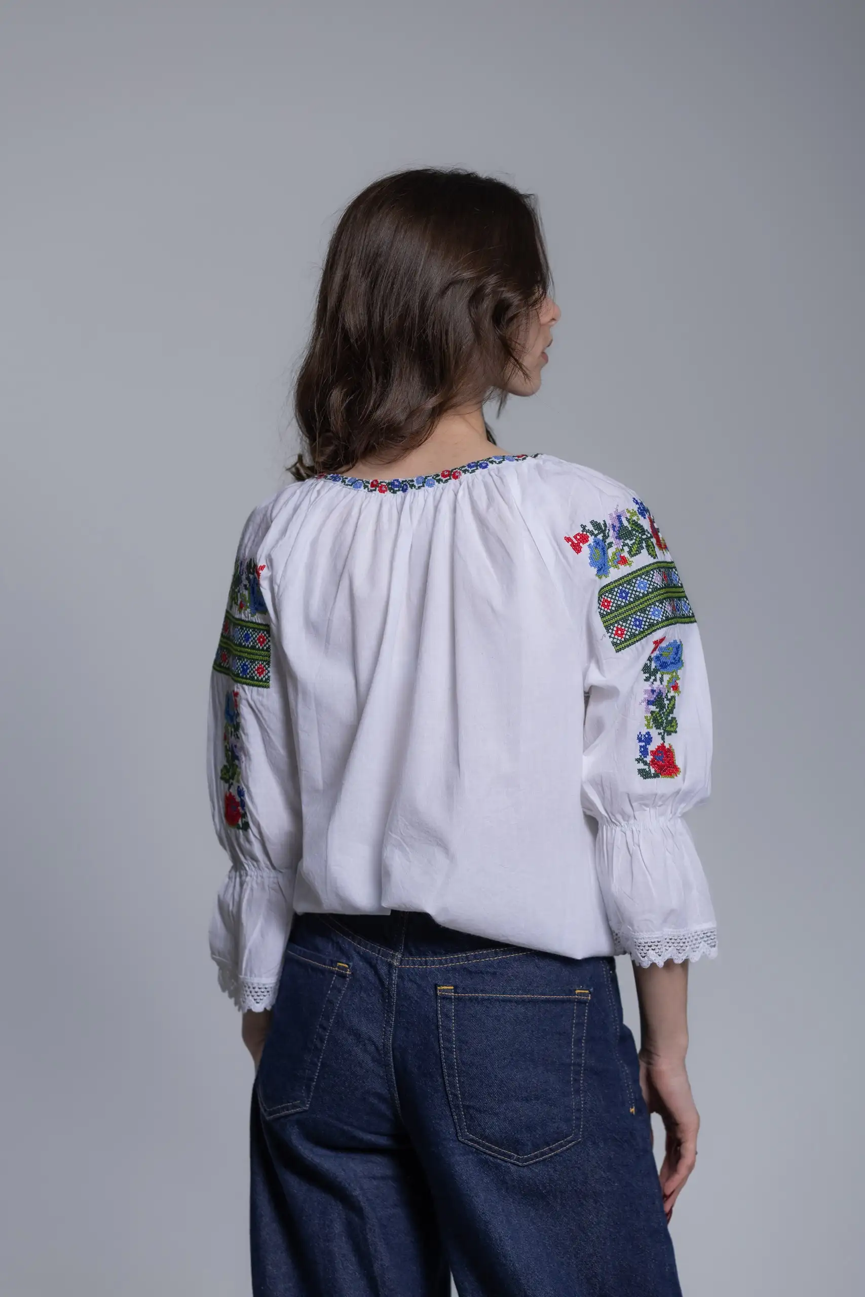 Redescoperă frumusețea portului tradițional cu această ie de damă. Confecționată din bumbac 100% de calitate superioară, această ie oferă confort, respirabilitate și un aspect elegant, potrivit atât pentru evenimente speciale, cât și pentru ținute casual.