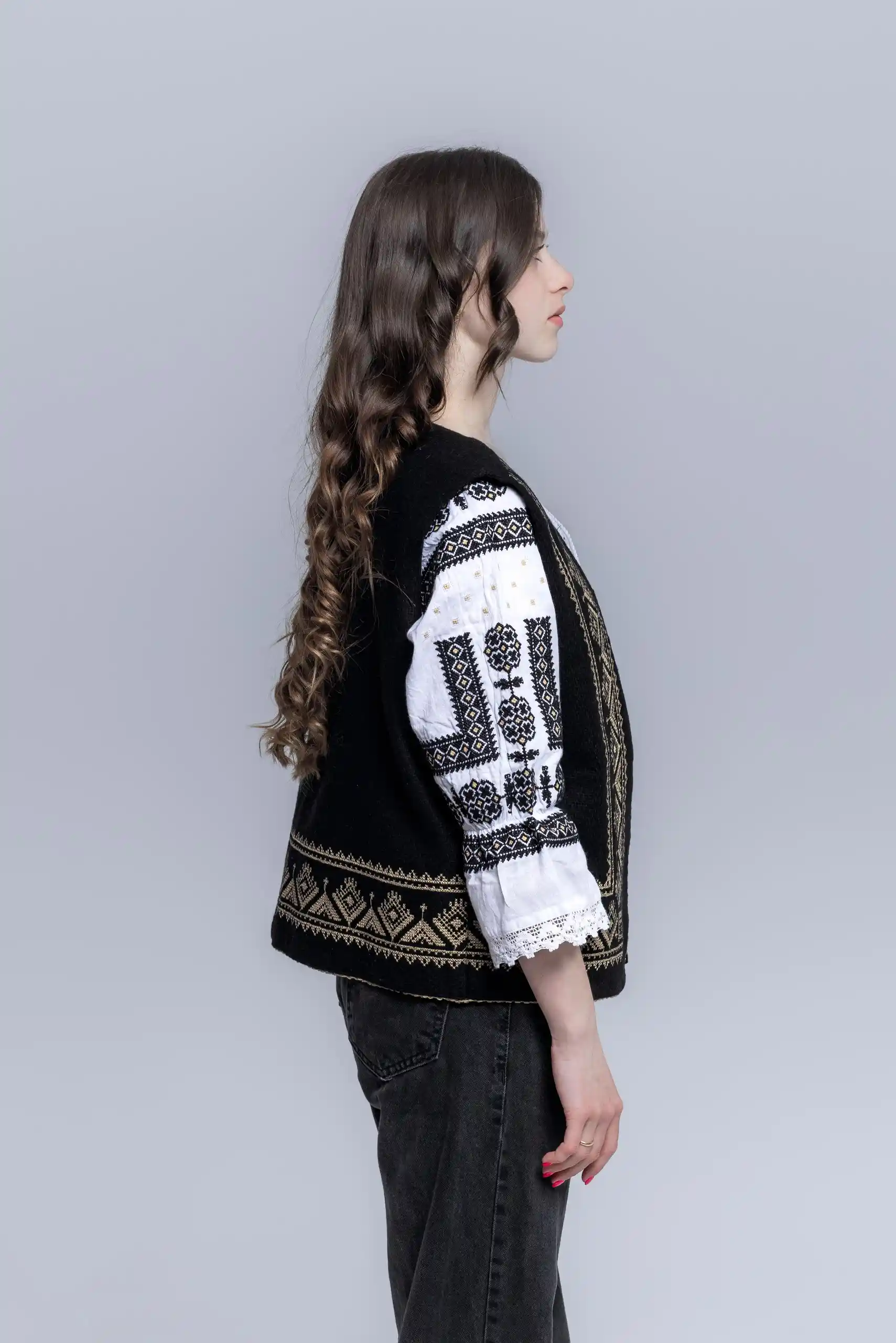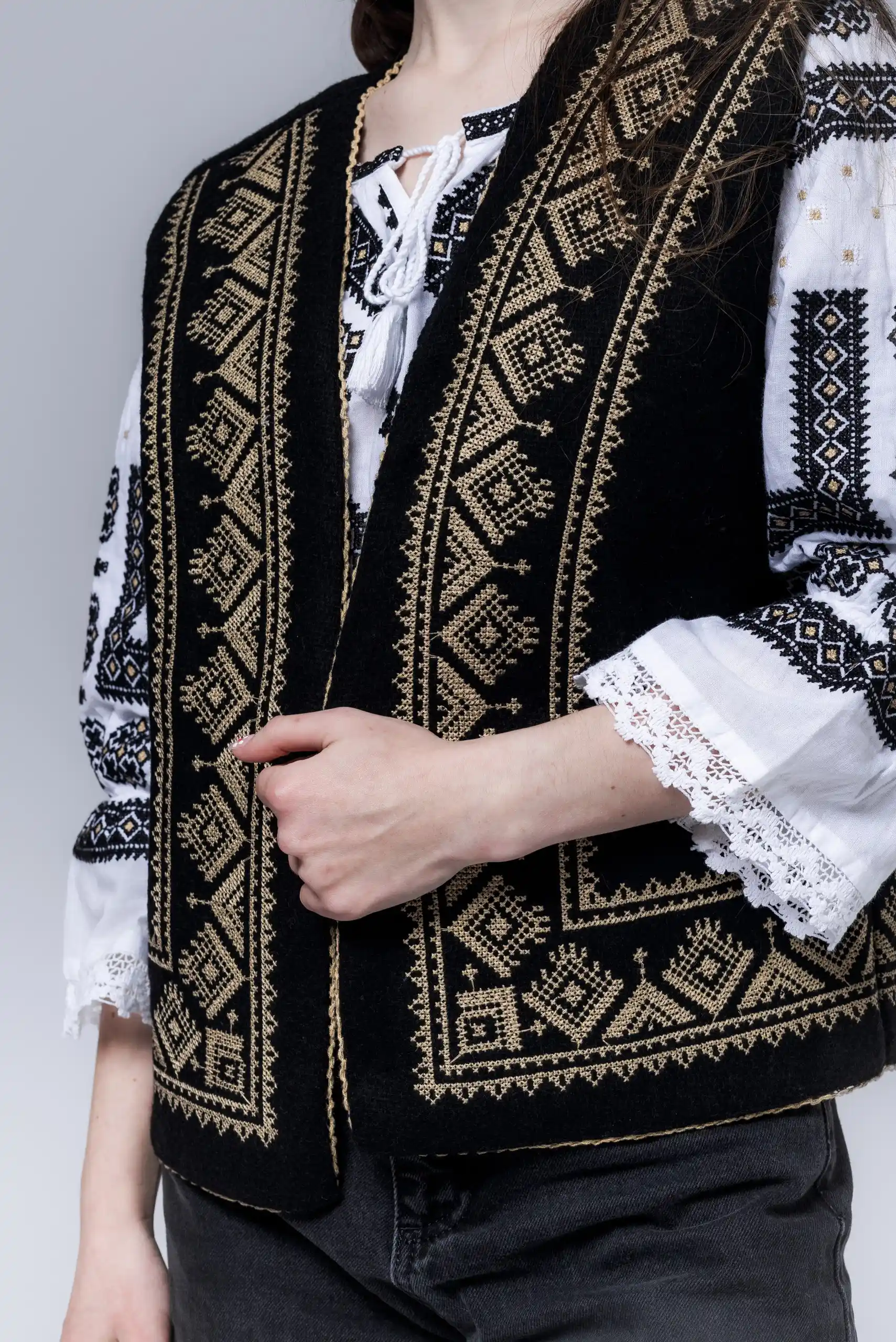 Redescoperă frumusețea portului tradițional cu această vestă de damă. Confecționată din materiale de calitate superioară, această vestă oferă confort, respirabilitate și un aspect elegant, potrivit atât pentru evenimente speciale, cât și pentru ținute casual.