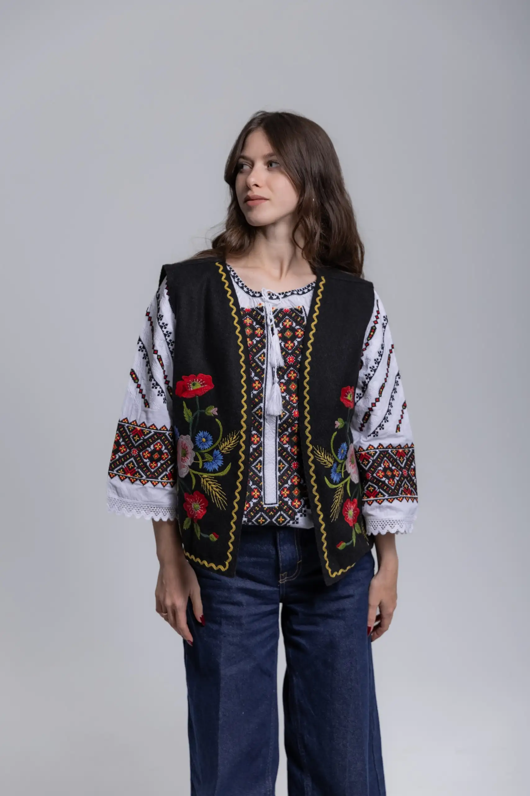 Redescoperă frumusețea portului tradițional cu această vestă de damă. Confecționată din materiale de calitate superioară, această vestă oferă confort, respirabilitate și un aspect elegant, potrivit atât pentru evenimente speciale, cât și pentru ținute casual.